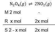 Jika mula-mula terdapat 2 mol dan pada keadaan setimbang jumlah mol keduanya sama, jumlah mol saat setimbang adalah ....