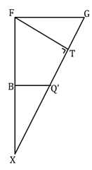 Selanjutnya misalkan titik T adalah proyeksi F pada garis GQ’. Jelas bahwa FT tegak lurus GQ’.