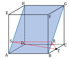 Diketahui sebuah kubus ABCD.EFGH dengan rusuk 8 cm. Jika titik T berada pada rusuk BC dengan , maka jarak titik T ke garis AH adalah … cm.