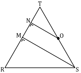 Titik M dan N berada pada garis TR sehingga garis SM dan ON tegak lurus dengan TR. Sehingga jarak dari O ke TR sama saja dengan panjang rusuk ON. Cari panjang masing-masing sisi dari segitiga RST.
