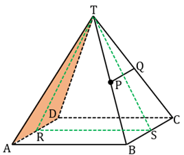 Perhatikan bahwa RS akan sejajar AB, sehingga RS juga akan tegak lurus dengan AD. Selanjutnya, TA = TD, sehingga TR akan menjadi garis tinggi segitiga TAD, atau TR tegak lurus dengan AD.