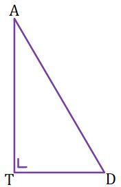 Perhatikan bahwa TA tegak lurus dengan TB dan TC. Sehingga TA tegak lurus dengan TBC. Karena TD terletak di bidang TBC, maka TA juga tegak lurus dengan TD. Maka ADT adalah segitiga siku-siku di T.