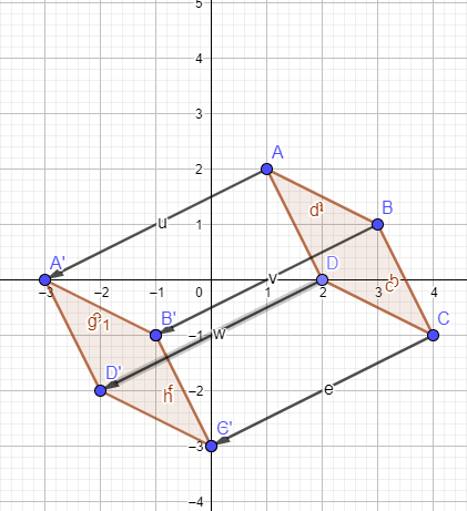Diketahui segi empat ABCD memiliki titik sudut di , dan . gambarlah segi empat tersebut kemudian gambar hasil bayangannya jika ditranslasikan sejauh 4 satuan kekiri dan 2 satuan ke bawah. Tuliskan koordinat bayangan hasil translasi segi empat ABCD (bayangan ABCD selanjutnya disebut dengan A'B'C'D'),
