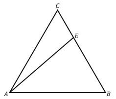 Titik D membagi AB dengan perbandingan AD : DB = 3 : 5 dan titik F terletak di tengah-tengah AC. Panjang AE adalah ... cm.