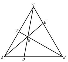 Diketahui segitiga ABC adalah segitiga sama sisi dengan panjang sisi 16 cm. Titik D, E, dan F masing-masing terletak pada ruas garis AB, BC, dan AC. Garis CD, AE, dan BF berpotongan di titik G seperti ditunjukkan oleh gambar berikut.