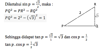 Diketahui segitiga PQR siku-siku di Q dan , maka hasil ....