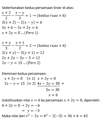 Diketahui sistem persamaan linier . Nilai dari adalah...