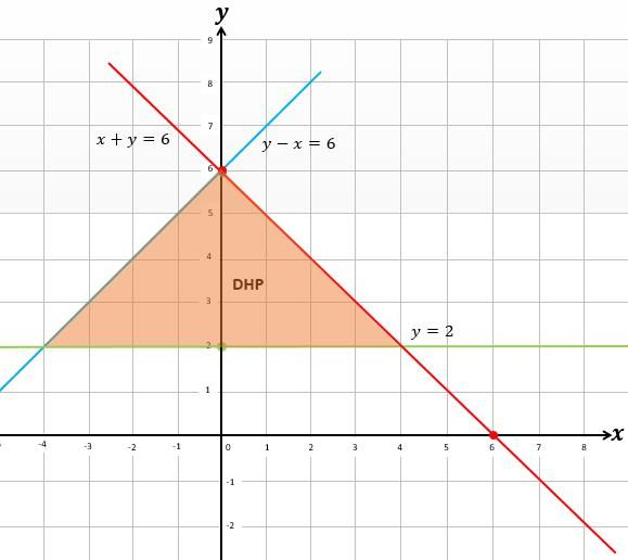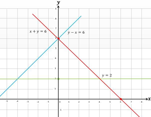 x + y ≤ 6, y - x ≤ 6, y ≥ 2