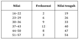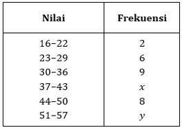Diketahui tabel diagram frekuensi dari 40 data sebagai berikut