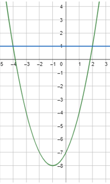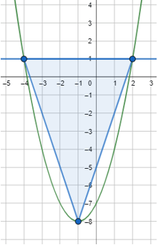 Diketahui titik-titik sudut pada sebuah segitiga terletak pada grafik fungsi kuadrat . Jika dua titik sudut pada segitiga tersebut terletak pada garis y = 1 dan satu titik lainnya terletak pada kuadran III atau IV, maka luas maksimum segitiga tersebut adalah ....