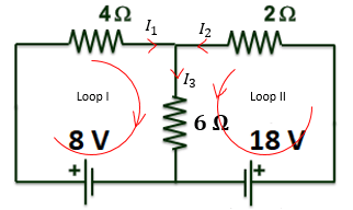 Dina memiliki 3 buah hambatan listrik, yaitu hambatan 4 ohm, 2 ohm, dan 6 ohm. Dua baterai yang masing-masing memiliki tegangan 8 V dan 18 V dirangkai oleh Dina bersamaan dengan ketiga hambatan listrik tersebut seperti pada gambar berikut.