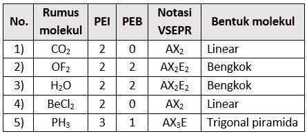 Pasangan senyawa yang mempunyai bentuk molekul sama ditunjukkan oleh angka ....