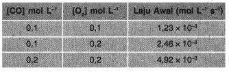 Berdasarkan perhitungan tersebut maka orde reaksi terhadap CO adalah 1 dan orde reaksi terhadap O2 adalah 1.