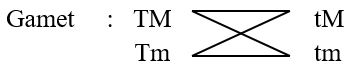 Disilangkan tanaman berbatang tinggi daun merah TTMm dengan tanaman berbatang pendek daun merah (ttMm). Adanya genotip mm menyebabkan tidak terbentuknya klorofil pada tanaman tersebut, maka rasio genotip tanaman yang dapat hidup dan yang mati adalah ....