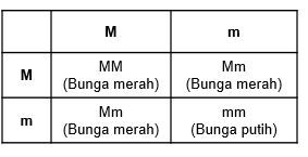 Disilangkan tanaman berbunga merah (MM) dengan tanaman berbunga putih (mm), bagaimanakah perbandingan fenotipe-nya pada F2 apabila warna merah bersifat dominan?