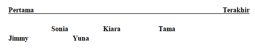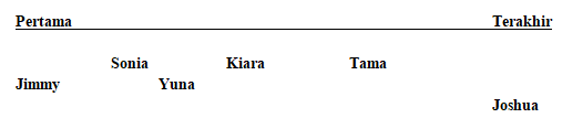 Dokter Ramlan memiliki 6 orang pasien rawat inap bernama Sonia, Josua, Yuna, Tama, Jimmy, dan Kiara yang setiap pagi ia kunjungi untuk memeriksa perkembangan kesehatan mereka. Dokter Ramlan selalu mengunjungi keenam pasien tersebut secara berurutan sebagai berikut.
