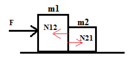 Dua balok bersentuhan diam diatas lantai licin (lihat gambar). Jika gaya horizontal 290 N dikerjakan pada balok 85 kg, hitunglah: