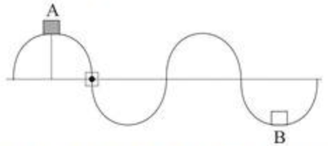 Dua balok kayu kecil A dan B terapung di permukaan danau. Jarak keduannya adalah 150 cn. Ketika gelombang sinusoida menjalar pada permukaan air teramati bahwa pada saat t=0 detik. Balok A berada di puncak, sedangkan balok B berada di lembah. Keduanya dipisahkan satu puncak gelombang. Pada saat t=1 detik, balok A berada di titik setimbang pertama kali dan sedang bergerak turun. Manakah pernyataan yang benar tentang gelombang pada permukaan air tersebut.