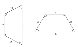 Di bentuk yang sebelah kiri, sisi yang di antara sudut yang labelnya garis satu dan yang labelnya lingkaran panjangnya adalah 21,