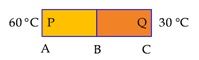 Bila panjang dan luas penampang logam sama tetapi konduktivitas logam P dua kali konduktivitas logam Q, maka suhu tepat di sambungan B adalah .…