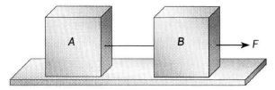 Dua benda A dan B berada di atas bidang datar licin dan dihubungkan dengan tali seperti gambar berikut.