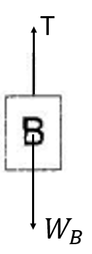 Jika lantai dan gesekan antara tali dengan katrol diabaikan, dan B bergerak turun, maka besar tegangan tali T adalah ....