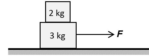 Jika koefisien statis antara kedua benda 0,3 dan benda kedua diberi gaya sebesar F , maka nilai F maksimum agar kedua benda tetap bergerak bersama-sama adalah ….