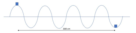 Dua buah balok kayu terapung pada permukaan laut dan terpisah pada jarak 300 cm. Keduanya turun dan naik bersama permukaan air dengan frekuensi 14 getaran per sekon. Diketahui salah satu balok berada di puncak gelombang dan balok yang lainnya ada di dasar gelombang. Jika di antara kedua balok terdapat tiga bukit gelombang, cepat rambat gelombang air tersebut adalah ….