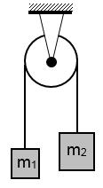 Dua buah benda bermassa 1 kg dan 4 kg dihubungkan dengan katrol seperti gambar.