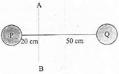Dua buah bola yang dianggap sebagai partikel dihubungkan dengan seutas tali kawat seperti gambar. Bila massa bola P dan Q masing-masing 600 gram dan 400 gram, maka momen inersia sistem kedua bola terhadap poros AB adalah ....