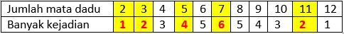 Dua buah dadu dilempar bersama-sama sebanyak satu kali. Tentukanlah peluang dari :