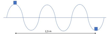 Dua buah gabus terapung dipermukaan air laut dan berjarak 2,5 m satu sama lain. Jika satu gabus berada di puncak gelombang, satunya lagi berada di dasar gelombang, dan di antara kedua gabus tersebut terdapat dua bukit dan dua lembah, maka panjang gelombang air pada saat itu adalah ….