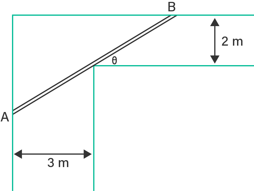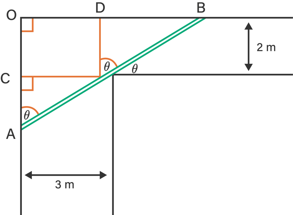 Dua buah koridor membentuk sudut siku-siku dan lebamya masing-masing dan : sebatang pipa dipindahkan melalui pojok secara horizontal. adalah sudut seperti ditunjukkan pada gambar di bawah ini.