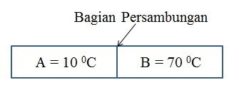 Jika konduktivitas termal A setengah dari konduktivitas B, maka suhu pada bagian persambungan adalah ... 0C.