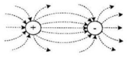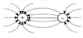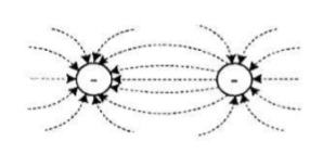 Dua buah muatan listrik didekatkan satu sama lain dalam satu garis hubung sehingga akan menghasilkan garis-garis gaya listrik. Gambar yang benar adalah.....