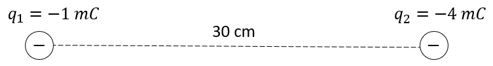 Dua buah muatan negatif diletakkan terpisah sejauh 30 cm satu sama lain.