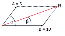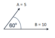 Dua buah vektor masing-masing A = 5 satuan dan B = 10 satuan disusun seperti pada gambar berikut ini.