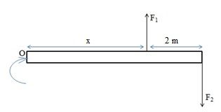 Agar diperoleh momen gaya 20 Nm terhadap poros O, maka panjang x adalah ....