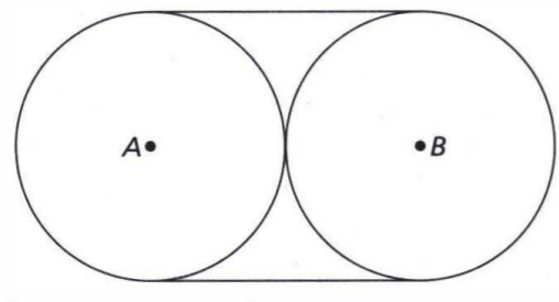 bersinggungan dan berjari-jari sama panjang. Jika panjang jari-jari kedua pipa adalah dan , panjang lilitan tali minimum yang diperlukan untuk mengikat kedua pipa adalah ....