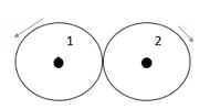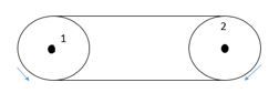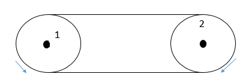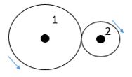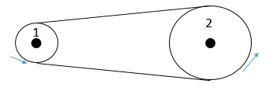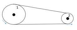 Dua roda 1 dan 2 terhubung secara langsung dan juga melalui karet. Gambar yang tepat agar diperoleh nilai kecepatan sudut roda 1 lebih besar dibanding roda 2 adalah …