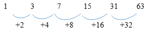Dua suku berikutnya dari barisan 1, 3, 7, 15, ... adalah….