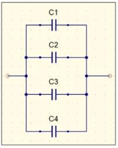Empat buah kapasitor dirangkai secara paralel seperti pada gambar di bawah ini. Jika besar keempat kapasitor adalah C1 = 2 µF, C2 = 4 µF, C3 = 6 µF dan C4 = 8 µF. Tentukan kapasitas kapasitor pengganti untuk keempat kapasitor tersebut?