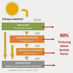 Energi yang hilang pada saat terjadinya aliran energi dari produsen ke konsumen primer disebabkan oleh…