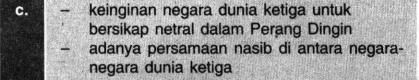 Faktor yang melatarbelakangi pembentukan Gerakan Non-Blok ditunjukkan oleh pilihan ...