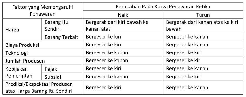 Faktor yang menyebabkan pergerakan titik sepanjang kurva penawaran adalah…