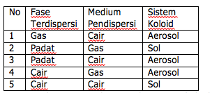 Fase terdispersi, pendispersi, dan sistem koloid yang sesuai ditunjukan oleh nomor…