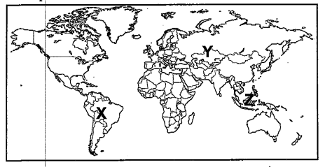 Fauna di wilayah bertanda X,Y, dan Z secara berturut-turut seperti gambar merupakan lokasi persebaran zona ....