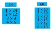 FPB dari 24 dan 60 adalah….