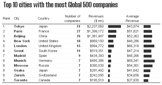 The city that has the highest number of companies doesn’t have the highest average revenue.