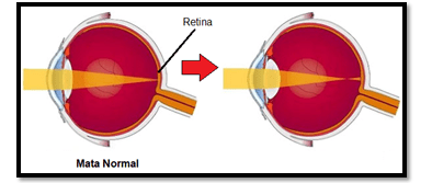 Retina adalah bagian mata yang berfungsi untuk menangkap bayangan benda. Jika seseorang memiliki penglihatan normal, bayangan benda akan terbentuk tepat di retina. Gambar di atas menunjukkan mata seseorang yang menderita rabun ... Karena bayangan benda terbentuk di ... Retina.